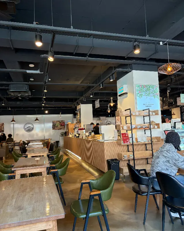 따순기미는 빵 맛뿐만 아니라, 분위기도 훌륭했다. 높은 천장과 통유리창 덕분에 개방감이 느껴졌고, 은은한 조명과 아늑한 인테리어는 편안한 분위기를 자아냈다. 매장 곳곳에 놓인 화분과 아기자기한 소품들은 따뜻한 느낌을 더했다. 혼자 왔지만, 전혀 어색하지 않고 오히려 혼자만의 시간을 즐기기에 좋은 공간이었다. 직원분들도 친절해서 기분 좋게 빵을 고르고 커피를 주문할 수 있었다.