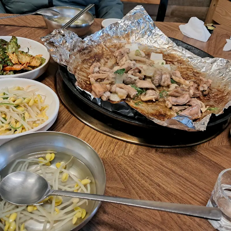 함께 나온 콩나물국은 시원하고 깔끔한 맛으로 입안을 개운하게 해주었다. 콩나물의 아삭한 식감과 은은한 멸치 육수의 조화는, 매콤한 꼼장어와 환상적인 궁합을 자랑했다. 콩나물 무침 또한 빼놓을 수 없는 별미였다. 새콤달콤한 양념에 버무려진 콩나물은 입맛을 돋우는 데 제격이었다.