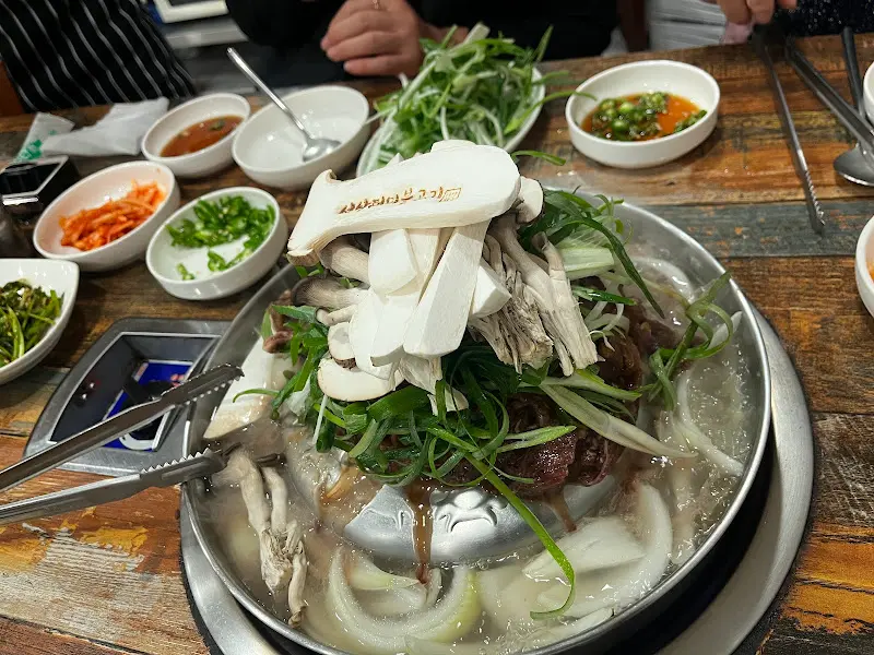 고기를 어느 정도 먹고 난 후, 소면 사리를 추가했다. 주인 아주머니께서 잘게 썰은 김치를 육수에 넣어주셨다. 처음에는 김치를 넣는다는 사실에 약간의 거부감이 들었지만, 아주머니의 추천을 믿고 그대로 따랐다.