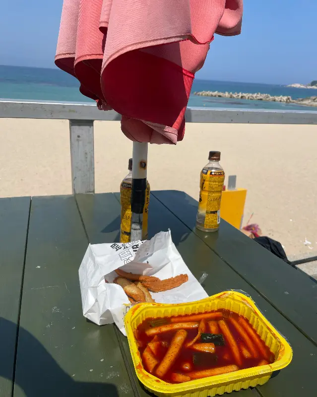 떡볶이 국물은 감칠맛이 풍부했다. 다시마, 멸치, 그리고 고추장의 조합은 글루타메이트 함량을 극대화하여 깊은 풍미를 선사했다. 나는 숟가락으로 국물을 떠 마셨다. 따뜻한 국물이 식도를 타고 내려가 위장을 부드럽게 감쌌다. 차가운 겨울 바다 앞에서 먹는 따뜻한 국물은 그 자체로 훌륭한 보온 장치였다. 마치 추운 겨울, 따뜻한 벽난로 앞에서 담요를 덮고 있는 듯한 포근함을 느꼈다.