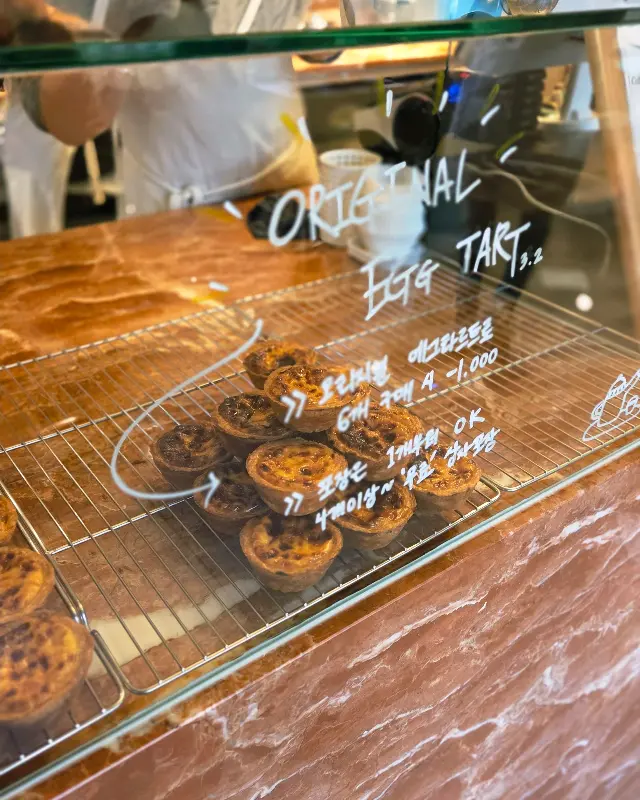 문을 열고 들어서니, 왁자지껄 활기 넘치는 분위기가 확 느껴지더라. 젊은 친구들이 어찌나 많은지, 여기가 정말 에그타르트 집이 맞나 싶었지. 그런데 쇼케이스 안에 가지런히 놓인 타르트들을 보니, 아, 내가 제대로 찾아왔구나 싶더라고. 갓 구워져 나온 듯한 따끈한 에그타르트들이 날 좀 데려가라며 손짓하는 것 같았어.