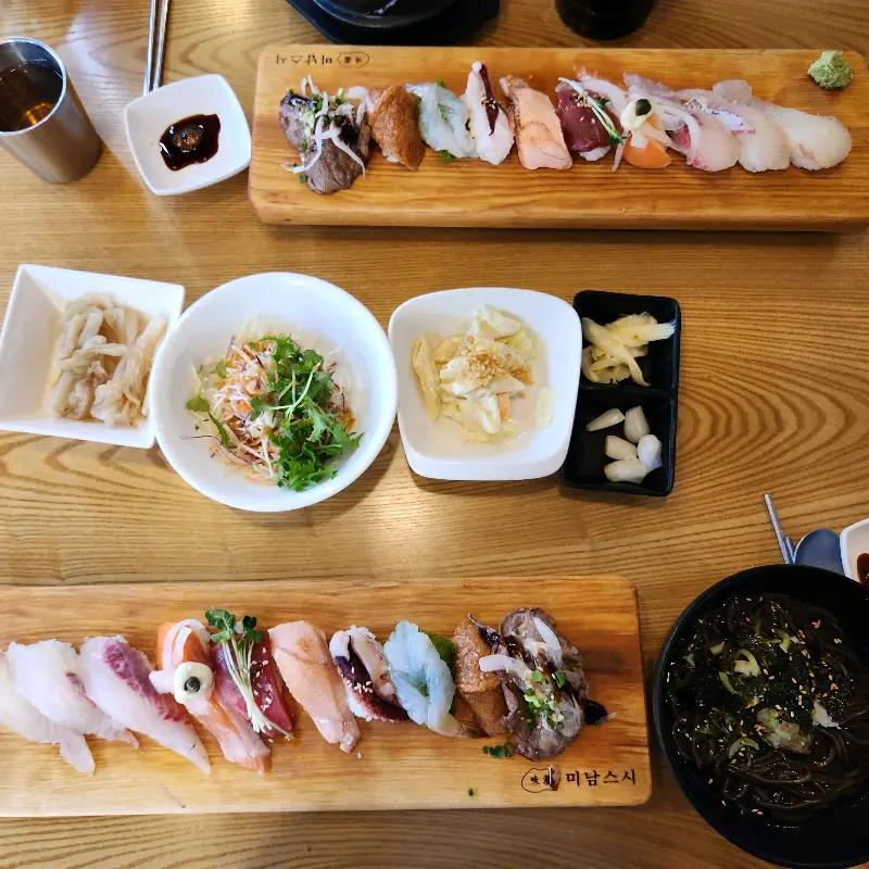 미남스시단체 모임에도 적합한 장소이다. 넓은 공간과 테이블 간 간격이 넉넉해서 편안하게 식사를 즐길 수 있고, 단체 손님을 위한 룸도 마련되어 있다고 한다. 실제로 내가 방문했을 때도, 옆 테이블에서는 직장인들이 회식을 하고 있었다.