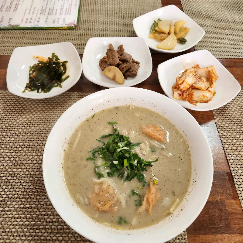 드디어 기다리고 기다리던 현미 떡만두국 등장! 뽀얀 국물에 쫑쫑 썰린 파가 듬뿍 올라가 있는데, 비주얼부터 합격이었다. 국물 한 입 딱 떠먹었는데… 와… 진짜 이거 미쳤다! 들깨가 들어가서 그런지, 엄청 고소하면서도 깊은 맛이 나는 거야. 현미로 만든 떡은 또 얼마나 쫄깃쫄깃한지! 씹을수록 고소한 맛이 올라오는데, 진짜 멈출 수가 없더라.