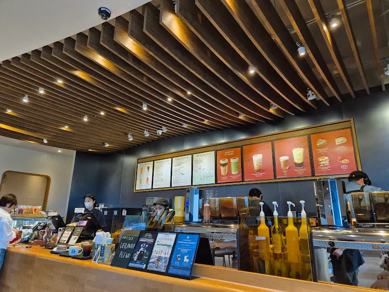 매장 내부는 넓고 깔끔하게 꾸며져 있어 편안한 분위기를 자아냅니다. 나무 소재를 많이 사용하여 따뜻하고 아늑한 느낌을 주었고, 은은한 조명은 편안한 휴식을 돕는 듯했습니다. 혼자 방문하여 노트북을 사용하는 사람들도 많았고, 친구들과 담소를 나누는 사람들도 많았습니다. 다양한 형태의 좌석이 마련되어 있어 각자의 취향에 맞게 자리를 선택할 수 있다는 점도 좋았습니다.