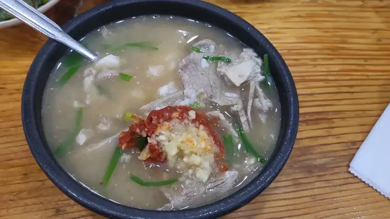 ✔️ 수육백반 (11,000원): 윤기가 자르르 흐르는 수육과 따뜻한 국물이 함께 제공되는 메뉴다. 수육은 얇게 썰어져 있어 부드럽고 촉촉하며, 잡내 없이 깔끔한 맛이 일품이다. 함께 제공되는 새우젓, 쌈장, 마늘 등과 함께 곁들여 먹으면 더욱 풍성한 맛을 즐길 수 있다. 국물은 돼지국밥 국물과 동일하며, 깊고 진한 맛이 수육과 환상적인 조화를 이룬다. 수육을 더욱 맛있게 즐기는 꿀팁! 따뜻한 밥 위에 수육 한 점을 올리고, 김치를 곁들여 먹으면 최고의 맛을 경험할 수 있다.