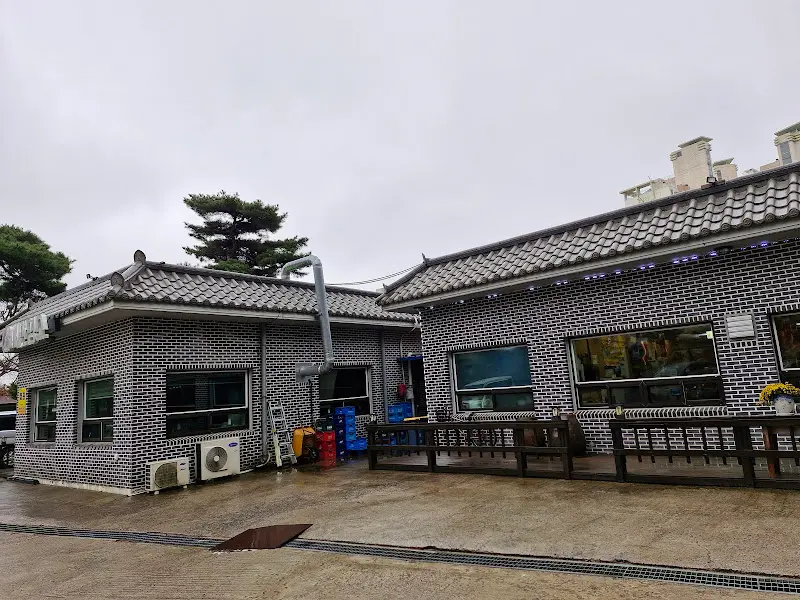 회색빛 하늘 아래, 촉촉하게 젖은 풍경을 바라보며 드라이브하는 기분도 꽤 괜찮았다. 목적지에 가까워질수록, 주변은 점점 한적한 분위기로 바뀌어갔다. 드디어 ‘김삿갓 밥상’ 앞에 도착했을 때, 나는 묘한 기대감에 휩싸였다. 짙은 회색 벽돌로 지어진 건물은 왠지 모르게 푸근한 인상을 주었고, 처마 밑에 매달린 조롱박 장식은 정겨운 분위기를 더했다. 비에 젖은 기와지붕이 운치를 더하는 외관은, 마치 고향집에 온 듯한 편안함을 선사했다.