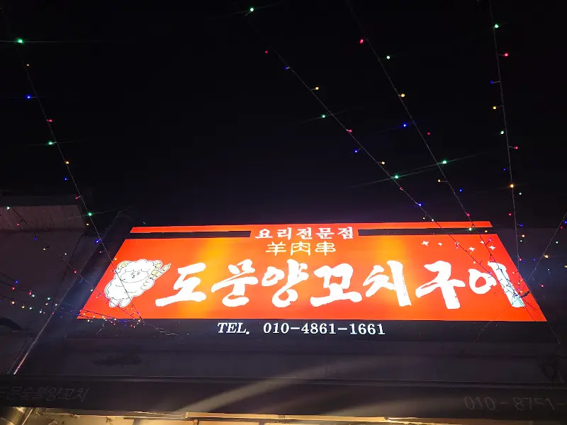 붉은색 간판이 인상적인 도문양꼬치구이