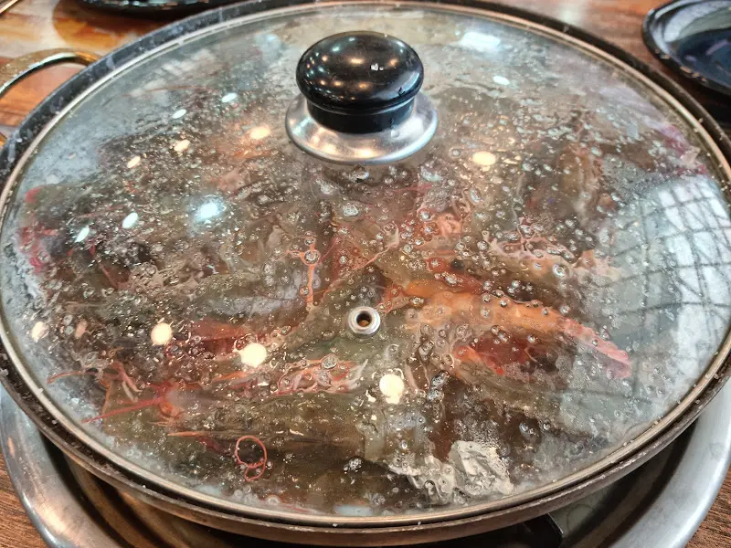 새우 구이 냄비 뚜껑 닫힌 모습