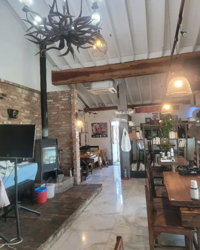 식당에 들어서자마자 독특한 분위기가 시선을 사로잡았다. 고딕 양식을 연상시키는 앤티크한 인테리어는 제주도의 자연과는 또 다른 매력을 뽐냈다. 은은한 조명 아래 놓인 나무 테이블은 편안함을 더했고, 벽난로가 설치된 공간은 아늑함마저 느껴지게 했다.