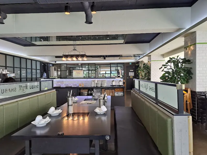 자리에 앉자, 메뉴판이 눈에 들어왔다. 샤브샤브는 순한맛, 매운맛, 마라맛, 반반 등 다양한 육수 옵션이 있었다. 고민 끝에 반반 육수를 선택하고, 양지와 목심을 주문했다. 잠시 후, 테이블 위에는 신선한 야채와 얇게 저며진 고기가 푸짐하게 차려졌다. 샐러드바가 있어 부족한 재료는 마음껏 가져다 먹을 수 있다는 점이 마음에 들었다.