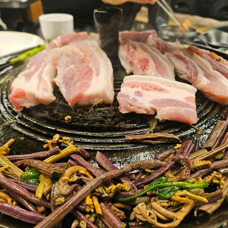 지글지글 익어가는 삼겹살과 고사리의 향연