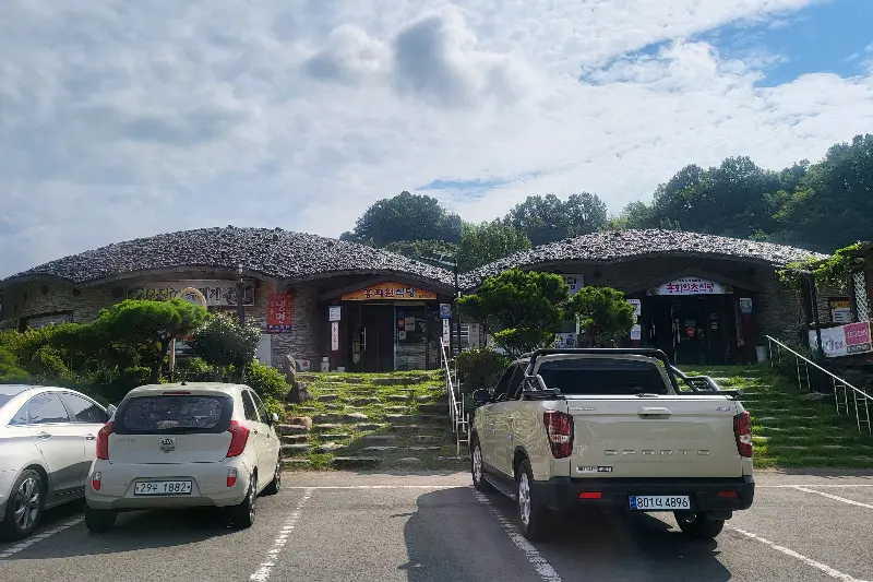 네비게이션 따라 굽이굽이 길을 돌아 도착한 홍화원은, 생각보다 훨씬 크고 널찍한 기와집이었어. 둥글둥글한 지붕이 정겹고, 넓은 주차장까지 마련되어 있어서 찾아오기에도 참 편하더라. 주차 걱정 없이 편하게 식사할 수 있다는 점이 마음에 쏙 들었지.