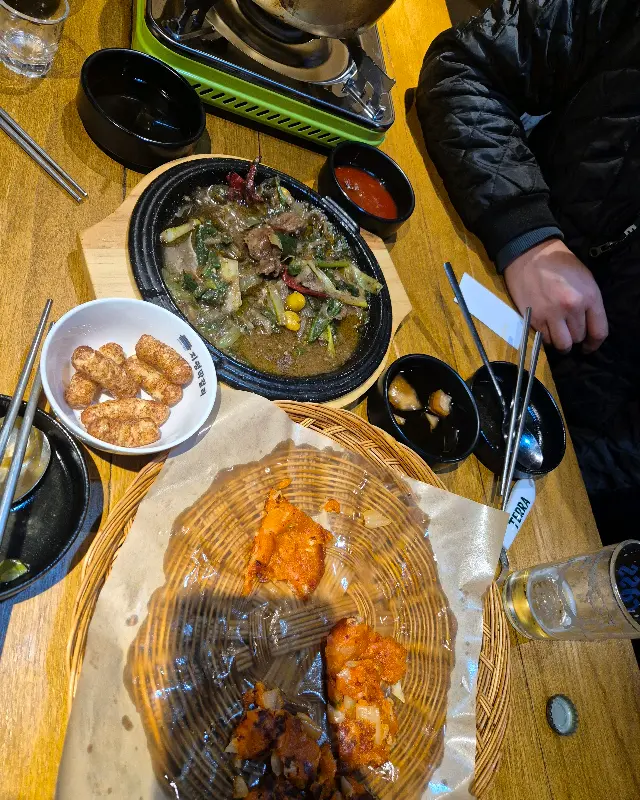일단, 샘골주막에 왔으면 곱도리탕은 꼭 먹어봐야 한다는 친구의 강력 추천에 따라 곱도리탕을 주문했지. 곱창과 닭, 그리고 갖가지 채소가 듬뿍 들어간 곱도리탕은 보기만 해도 군침이 싹 돌았어. 국물이 어찌나 진하고 얼큰한지, 한 숟갈 뜨는 순간 “아이고, 이 맛 좀 봐라!” 소리가 절로 나오더라. 곱창은 쫄깃쫄깃하고, 닭은 야들야들하니 입에서 살살 녹는 게, 정말 술안주로 최고였어. 잡내 하나 없이 깔끔한 맛은 정말 잊을 수가 없네.
