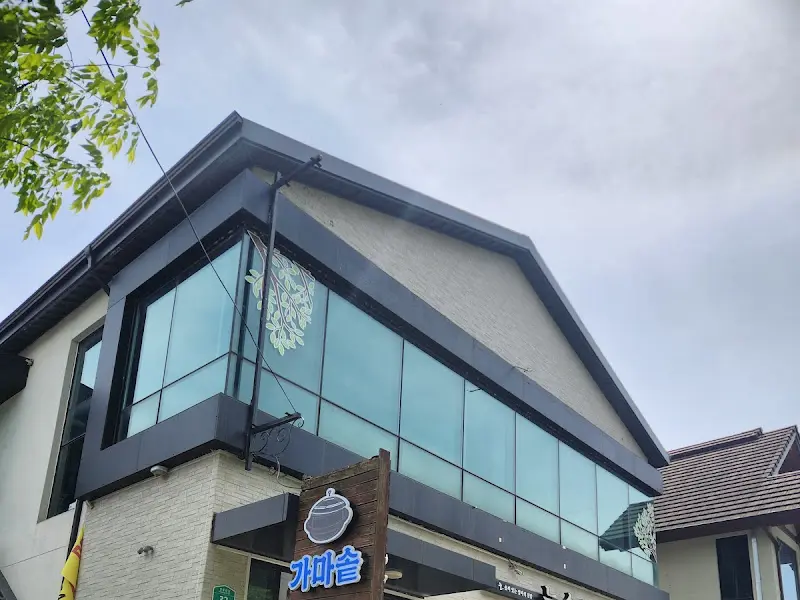 차를 타고 굽이굽이 길을 따라 들어가니, 저 멀리 하얀색 건물이 눈에 띄었다. 짙은 회색 프레임으로 포인트를 준 통창이 시원하게 펼쳐진 외관이 인상적이었다. 건물 앞에 도착하니, 푸릇푸릇한 나무들과 어우러져 더욱 멋스러워 보였다. 간판에 그려진 귀여운 가마솥 그림이 왠지 모르게 미소를 짓게 했다. 드디어 제대로 된 밥집을 찾은 것 같은 설렘이 마구 느껴졌다.