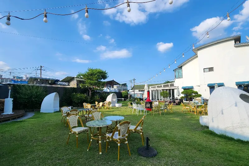 주차를 하고 딱 내리자마자, 입구부터 심쿵! 마치 비밀의 정원에 들어서는 듯한 기분 있잖아. 푸릇푸릇한 잔디밭에 아기자기한 테이블들이 놓여 있는데, 진짜 동화 속에 들어온 것 같았어. 야외 테이블에 앉아서 커피 마시는 사람들을 보니까, 나도 빨리 저 여유를 즐기고 싶어 안달이 났지.