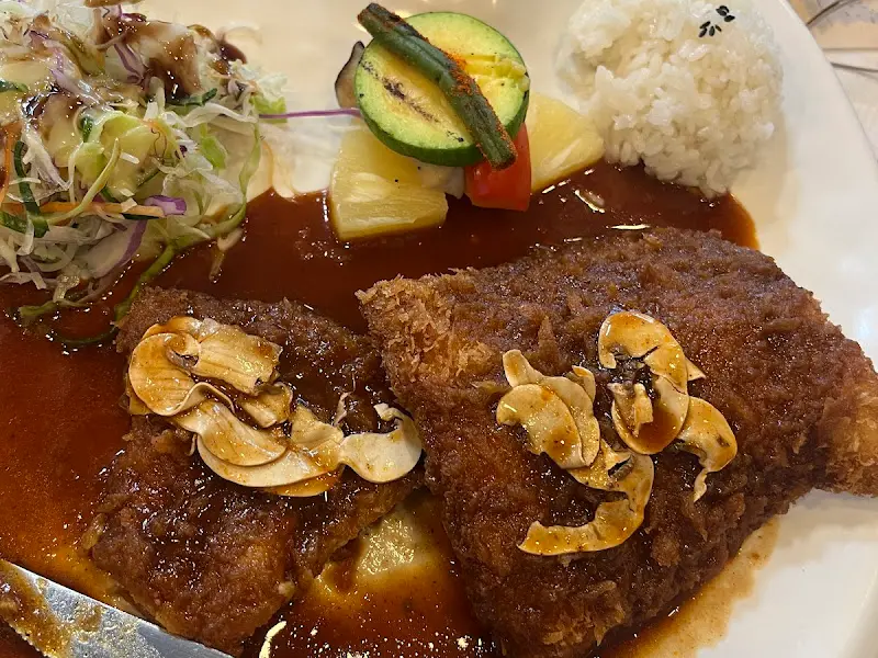소스 듬뿍 찍어서 한 입 딱! Yo, 이 맛은 레전드. 내 혀가 센드! 겉은 바삭하고 속은 촉촉한 돈까스, 거기에 달콤 짭짤한 소스가 환상의 콜라보를 이루는 맛! 돼지 잡내 하나 없이 깔끔하고, 육즙은 팡팡 터지고… 이거 완전 미쳤잖아! 돈까스 위에 올려진 구운 마늘칩이 신의 한 수. 느끼함은 잡아주고, 풍미는 UP 시켜주고!