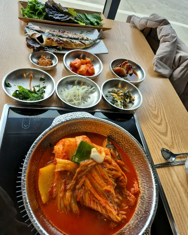 고등어 김치찜은 보기만 해도 군침이 돌았다. 푹 익은 김치와 무, 그리고 부드러운 고등어가 어우러진 모습은 그야말로 환상의 조합이었다. 김치를 한 점 들어 맛보니, 입안에서 사르르 녹아내리는 듯한 부드러운 식감과 함께 매콤하면서도 달짝지근한 맛이 느껴졌다. 특히, 고등어의 기름진 맛을 김치가 잡아주어 전혀 느끼하지 않았다.