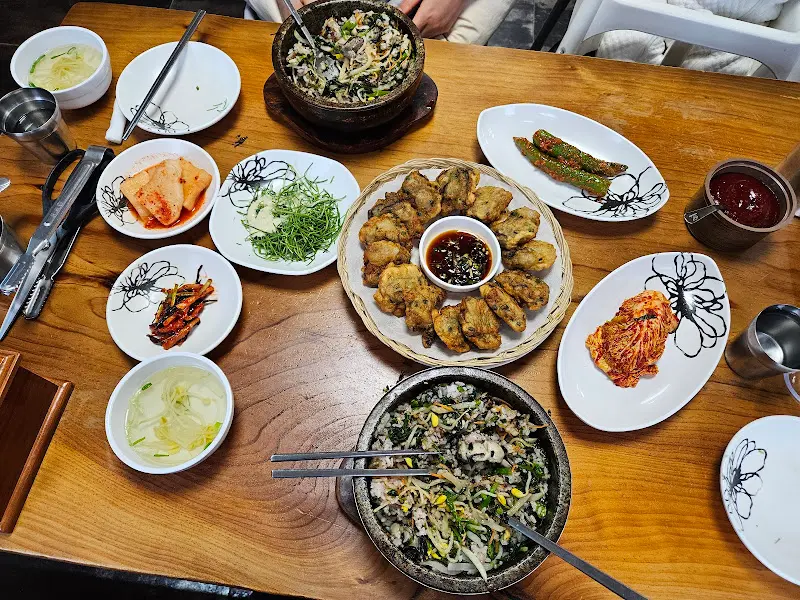 문을 열고 들어선 굴이야기는 예상보다 훨씬 활기찬 분위기였다. 점심시간이라 그런지 테이블은 손님들로 가득 차 있었고, 왁자지껄한 소리가 공간을 가득 메웠다. 나무 테이블과 의자는 편안한 느낌을 주었고, 곳곳에 놓인 아기자기한 소품들은 정겨운 분위기를 더했다. 특히 인상적이었던 것은 테이블마다 놓인 돌솥이었다. 은은하게 달궈진 돌솥은 시각적으로도 식욕을 자극하는 효과가 있었다.