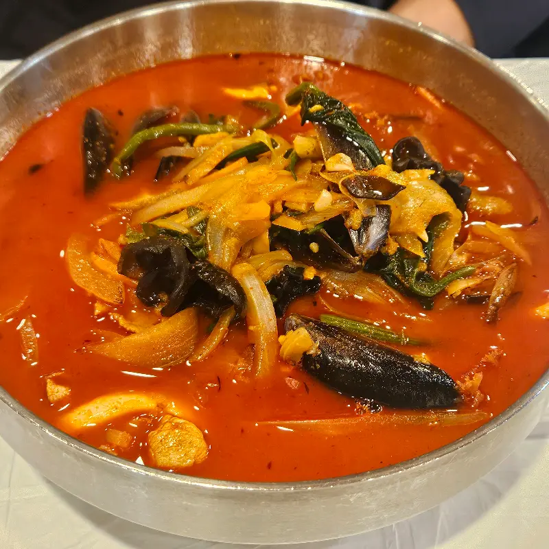 자리에 앉자마자 메뉴판을 펼쳤다. 짬뽕, 짜장, 탕수육… 아, 결정 장애 발동! 그래도 오늘은 왠지 얼큰한 국물이 땡기는 날이라, 짬뽕 쪽으로 마음이 기울었다. 그래, 오늘 나의 선택은 바로 삼선짬뽕! 친구는 굴짬뽕으로 낙점! 주문하고 나니, 따뜻한 자스민차가 나왔다. 찻잔을 들고 홀짝이는 사이, 드디어 기다리고 기다리던 삼선짬뽕이 등장했다.