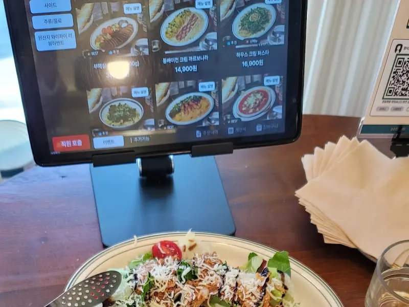 가게 문을 열자, 아늑하고 따뜻한 분위기가 나를 맞이했다. 은은한 조명 아래, 나무 테이블과 의자가 편안함을 더했고, 벽에는 작은 그림과 소품들이 놓여 있어 소소한 멋을 더했다. 테이블마다 놓인 태블릿 메뉴판이 눈에 띄었다. 나는 자리에 앉아 천천히 메뉴를 살펴보았다. 라자냐, 파스타, 샐러드 등 다양한 메뉴들이 있었지만, 가장 먼저 눈에 들어온 것은 역시 라자냐였다. 이 집의 라자냐가 그렇게 맛있다는 소문을 익히 들어왔기 때문이다.