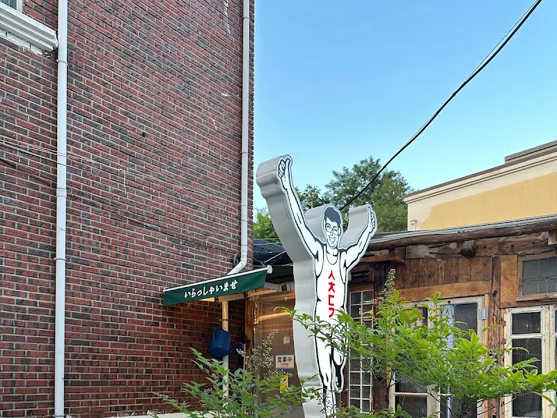 설악산 등반으로 뻐근했던 몸을 이끌고 도착한 ‘속초동경’은 외관부터가 범상치 않았어. 낡은 벽돌 건물과 나무 골조가 어우러진 모습이 마치 일본의 작은 골목길 어딘가에 있을 법한 분위기를 풍겼거든. 입구에 세워진 글리코상을 오마주한 듯한 캐릭터 조형물도 재밌었고. 알고 보니 사장님 자제분 얼굴을 본떠서 만든 거라고 하더라. 이런 위트 넘치는 디테일, 완전 내 스타일이야!