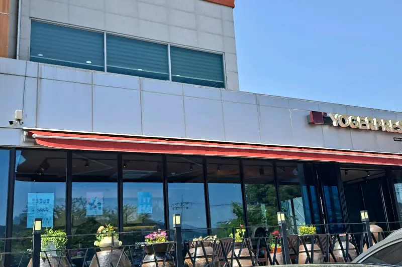 배부르게 식사를 마치고 나니, 달콤한 디저트와 향긋한 커피 한 잔이 간절해졌다. 솔잎한우프라자 바로 옆에 위치한 요거프레소가 눈에 들어왔다. 망설일 틈도 없이 이끌리듯 발걸음을 옮겼다. 외관부터 깔끔하고 모던한 분위기가 마음에 쏙 들었다. 통유리 너머로 보이는 햇살 가득한 내부 모습은, 마치 나를 위한 작은 휴식 공간 같았다.