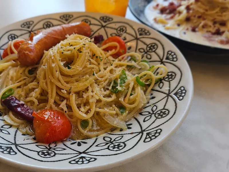 곧이어 토마토 함박파스타가 테이블에 놓였다. 탐스러운 함박 스테이크가 파스타 위에 떡하니 자리 잡은 모습은, 보기만 해도 배부른 느낌이었다. 포크로 함박을 조심스레 갈라 파스타 면과 함께 입에 넣으니, 새콤달콤한 토마토소스가 입안 가득 퍼져 나갔다. 함박의 육즙과 소스의 조화는 환상적이었다.