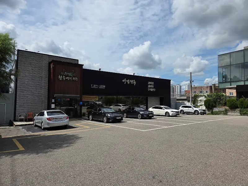 넓은 주차장을 자랑하는 강남면옥의 외관입니다. 주차 걱정 없이 방문할 수 있다는 점이 큰 장점이죠.