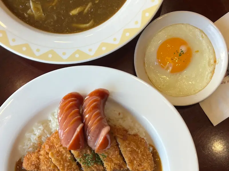 자리에 앉아 메뉴판을 펼쳐 들었다. 마치 주기율표를 마주한 듯, 다양한 카레와 토핑 옵션들이 나열되어 있었다. 야채카레, 크림카레, 버섯카레… 고민 끝에 나는 ‘가장 기본에 충실한 것이 가장 과학적’이라는 신념하에 야채카레를 선택했다. 그리고 토핑으로는 돈가스, 새우튀김, 소시지, 계란, 해쉬브라운을 추가했다. 마치 화학 실험에서 다양한 촉매제를 첨가하듯, 각각의 토핑이 카레의 풍미를 어떻게 변화시킬지 궁금했기 때문이다.