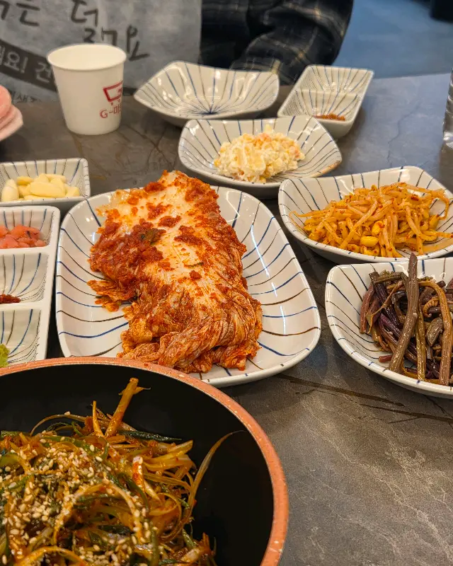 이미지에서도 보이듯이, 반찬 하나하나 정성이 느껴지는 맛이었어. 솔직히 고기 나오기 전에 반찬만으로도 소주 한 병은 거뜬하겠더라.