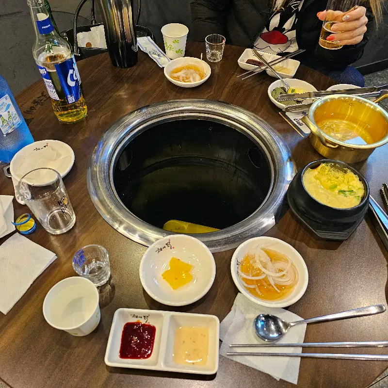 문을 열자 따스한 온기가 나를 감쌌다. 테이블마다 놓인 숯불 화로 위에서, 닭갈비가 지글거리는 소리가 경쾌하게 울려 퍼졌다. 연기가 피어오르는 모습은 마치 한 폭의 그림 같았다. 나무 테이블은 정갈하게 놓여 있었고, 은은한 조명이 공간을 부드럽게 감쌌다. 첫인상부터가 마음을 사로잡는 곳이었다.