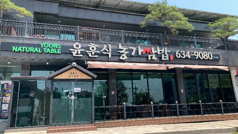 네비게이션이 가리키는 곳에 다다르자, 웅장한 외관의 윤훈식 농가 쌈밥이 모습을 드러냈습니다. 마치 잘 관리된 식물원처럼, 건물 곳곳에 푸르른 식물들이 싱그러움을 더하고 있었습니다. 통유리창 너머로 보이는 넓고 쾌적한 공간은, 마치 거대한 샐러드 볼 안에 들어온 듯한 착각을 불러일으켰습니다. 건물 앞 넓은 주차장은 마치 텅 빈 실험실처럼 넉넉했습니다. 주차 공간 부족으로 인한 스트레스는 세로토닌 분비를 억제하는 주범이기에, 넓은 주차 공간은 긍정적인 식사 경험을 위한 필수 조건이라 할 수 있죠.