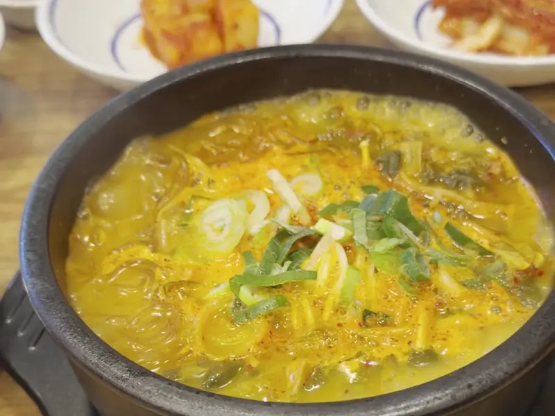 드디어, 기다리고 기다리던 나주곰탕이 내 앞에 놓였다. 뽀얀 국물 위로 송송 썰린 파와 고춧가루가 먹음직스럽게 뿌려져 있었다. 탕 안에는 부드러운 고기와 쫄깃한 당면이 푸짐하게 들어 있었다. 사진에서처럼 뚝배기 안에서 보글보글 끓는 모습은 당장이라도 숟가락을 들게 만들었다. 맑고 깊은 국물은 추운 날씨에 얼었던 몸을 사르르 녹여주는 듯했다.
