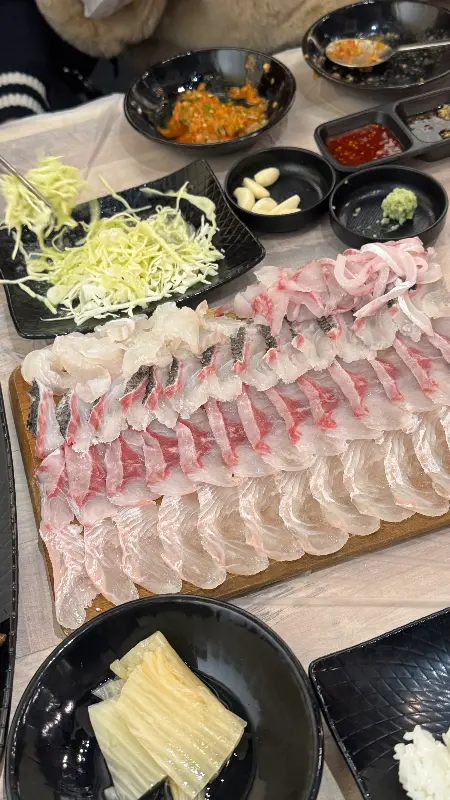 모듬회 역시, 신선함은 두말할 필요가 없었다. 참돔, 광어, 밀치 등 다양한 종류의 회가 한 접시에 담겨 나왔는데, 각각의 식감과 풍미가 어우러져 환상적인 조화를 이루었다. 특히, 두툼하게 썰어낸 회는 씹는 맛이 남달랐고, 입안 가득 퍼지는 바다 향은 잊을 수 없는 감동을 선사했다.