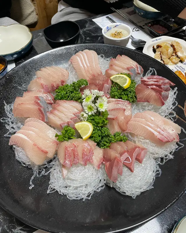 특히 돋보였던 건, 얼음 위에 정갈하게 놓인 모듬회의 비주얼이었다. 뽀얀 속살을 드러낸 횟감 위로 싱그러운 채소가 곁들여져, 보는 것만으로도 입안에 침이 고였다. 한 점 집어 입에 넣으니, 신선한 바다의 향이 코끝을 간지럽히며 미각을 자극했다. 찰진 식감은 물론, 은은하게 퍼지는 단맛까지 완벽했다.
