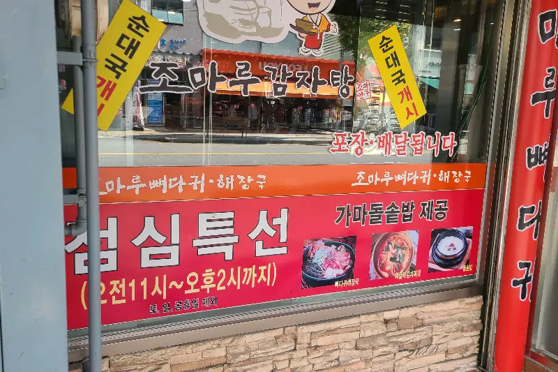 솔직히 말하면, 감자탕 자체의 맛은 다른 곳과 크게 다르지 않다고 생각한다. 하지만 조마루감자탕만의 특별함은 바로 ‘넉넉한 인심’에 있다. 음식을 아끼지 않고 푸짐하게 내어주는 사장님의 넉넉한 인심 덕분에, 늘 배부르고 만족스러운 식사를 할 수 있었다. 게다가 직원분들도 친절해서, 늘 기분 좋게 식사를 할 수 있었다.