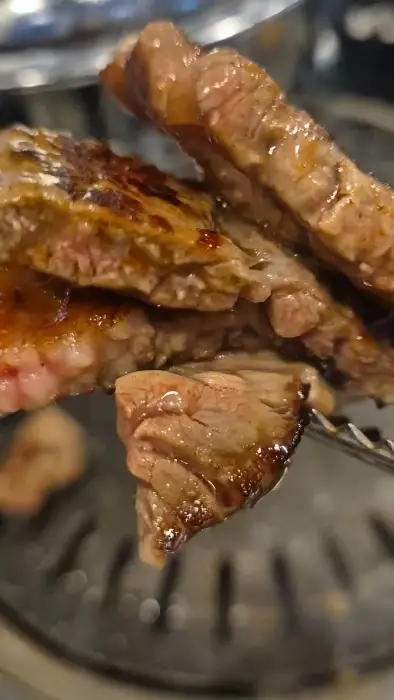 이 싱싱한 소고기를 불판에 올리니, 지글지글 익어가는 소리가 얼마나 맛있는 음악처럼 들리는지 몰라요. 갓 구워낸 따끈한 고기 한 점을 입에 넣는 순간, ‘아이고, 이 맛 좀 봐라!’ 저절로 감탄사가 나왔어요. 뻑뻑함이라곤 눈곱만큼도 없이, 입안에서 사르르 녹아내리는 그 부드러움이란! 마치 옛날 엄마가 정성껏 구워주시던 그 맛 그대로였어요. 씹을수록 고소한 육즙이 터져 나오는데, 밥 생각이 절로 나더라고요.