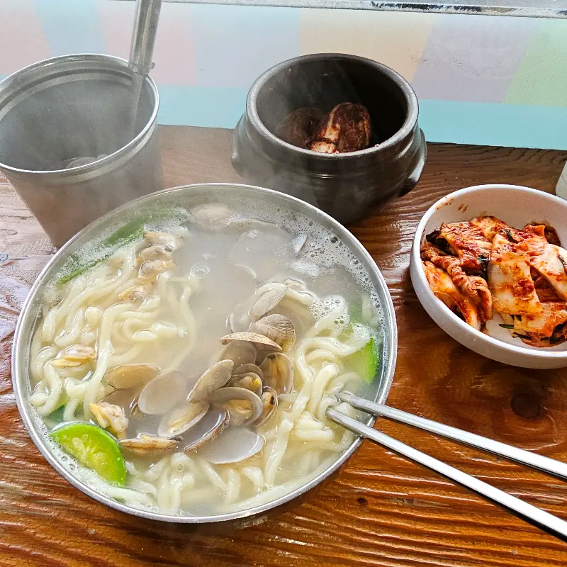 쫄깃한 면발도 칭찬 안 할 수 없지. 탱글탱글 살아있는 면발, 후루룩 먹는 재미가 쏠쏠해. 면발에 국물이 쫙 배어들어 환상의 콜라보를 선사하네. 바지락 하나, 면발 한 젓가락, 김치 한 입… 무한 반복, 젓가락질 멈출 수 없어.