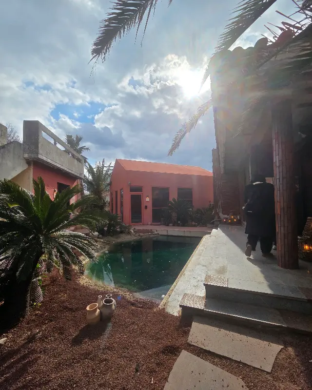 문을 열고 들어서는 순간, 여기가 정말 제주인가 싶을 정도로 이국적인 분위기가 물씬 풍겼어. 붉은 모래사장 위에 덩그러니 놓인 듯한 카페 외관은 마치 사막 속 오아시스를 연상시키는 모습이었지. 푸르른 야자수와 에메랄드빛 연못이 어우러져, 눈길 닿는 곳마다 그림 같았어. 셔터를 누르는 족족 인생샷이 나오니, 사진 찍는 재미도 쏠쏠하더라니까.