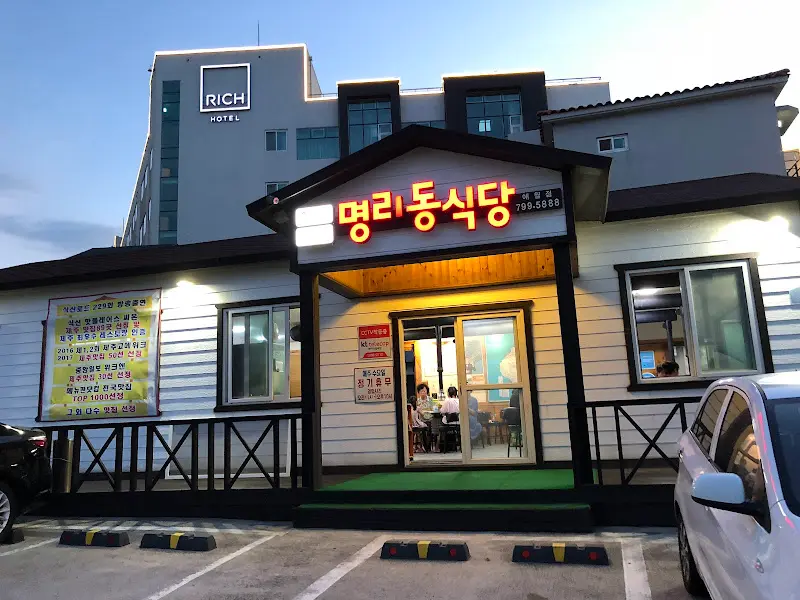 명리동식당 애월점은 애월 해안도로를 따라 드라이브하다 발견할 수 있었다. 건물 외관은 소박했지만, 왠지 모르게 풍기는 맛집 아우라가 느껴졌다. 넓은 주차 공간이 마련되어 있어 주차 걱정 없이 편하게 방문할 수 있었다. 평일 오후 6시쯤 방문했는데, 다행히 웨이팅 없이 바로 자리에 앉을 수 있었다. 혹시 피크 타임에 방문할 예정이라면 조금 서둘러 가는 것이 좋겠다.
