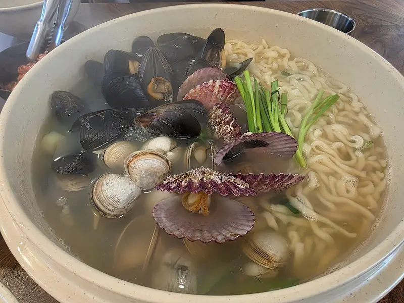 솔직히, 조개만 먹어도 배부를 정도였어. 손질도 엄청 잘 되어 있어서, 먹기에도 편했고! 진짜, 바닷가에서 먹는 해물칼국수보다 훨씬 퀄리티가 좋았어. 이 정도면 거의 조개 칼국수라고 불러도 될 정도라니까?