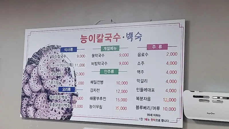 네비게이션 따라서 꼬불꼬불 길을 들어가는데, 엥? 여기가 맞아? 싶을 정도로 좁은 길이 나타나는 거야. 차를 가지고 왔다면, 초행길엔 살짝 긴장해야 할 수도! 드디어 도착! 식당 앞에 차를 대고 딱 내리는데, 왠지 모르게 정겨운 분위기가 느껴졌어. 간판은 큼지막하게 “능이칼국수”라고 적혀있고, 뭔가 세월이 느껴지는 듯한 외관이었어.