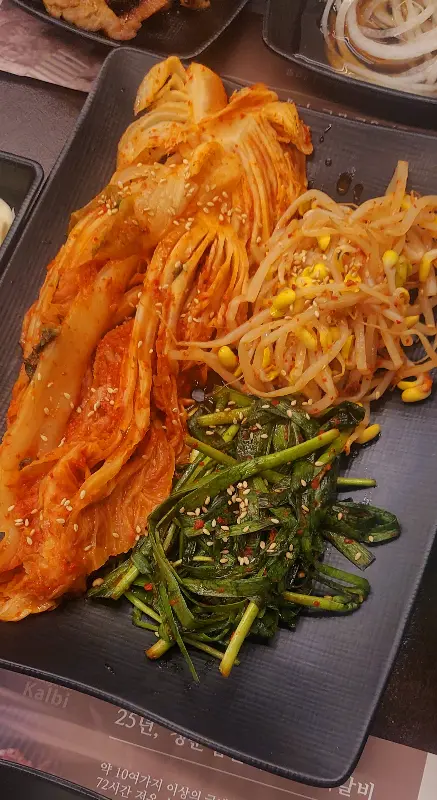 밑반찬 하나하나에도 정성이 느껴졌다. 특히, 신선한 야채와 깔끔한 포기김치는 입맛을 돋우기에 충분했다. 요즘처럼 포기김치를 내어주는 곳이 드문 시대에, 이런 푸짐한 인심은 작은 감동으로 다가왔다. 김치의 건강한 단맛은, 메인 메뉴인 갈비에 대한 기대감을 더욱 증폭시켰다.