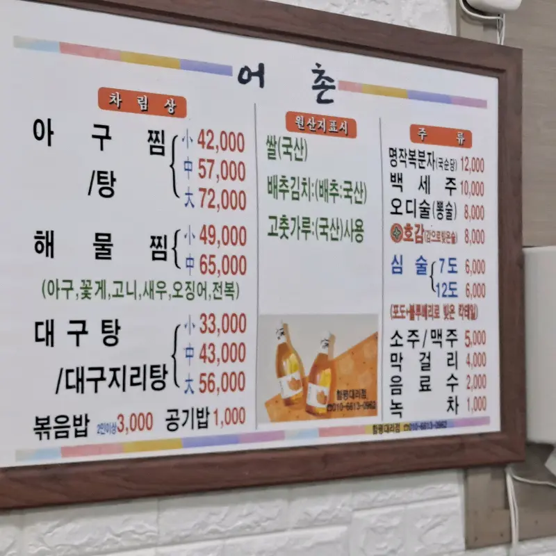 가게 문을 열자, 활기찬 기운이 나를 맞이했다. 테이블마다 옹기종기 모여 앉아 아구찜을 즐기는 사람들. 혼자 온 손님은 나뿐인 것 같았지만, 다행히 카운터석이 마련되어 있어 편안하게 자리를 잡을 수 있었다. 메뉴판을 보니 아구찜 외에도 해물찜, 아구탕 등 다양한 메뉴가 있었다. 하지만 나의 선택은 당연히 아구찜! 혼자 먹을 거라 소(小)자를 주문했는데, 사장님께서 “혼자 드시기엔 양이 많을 텐데 괜찮으시겠어요?”라며 걱정스럽게 물으셨다. 하지만 나는 굴하지 않았다. 이 정도는 거뜬하다는 자신감과 함께 주문을 완료했다.