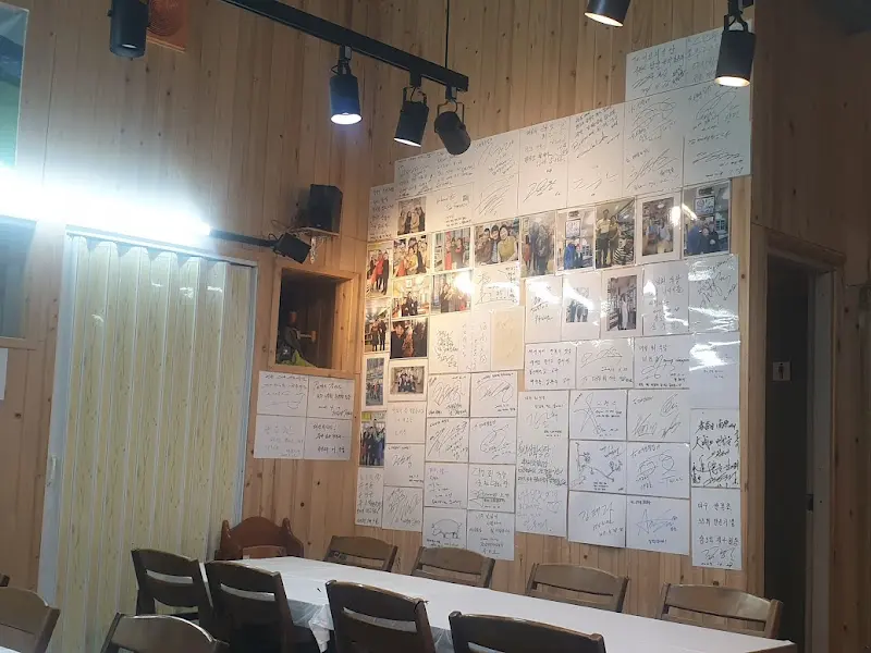 주문을 마치고 가게를 둘러보니, 벽 한쪽 면을 가득 채운 방문객들의 사진과 싸인이 눈에 띈다. 연예인 싸인도 있는걸 보니 꽤나 유명한 곳인가봐. 특히 천장에 달린 조명 덕분에 전체적으로 따뜻하고 아늑한 분위기가 느껴졌다. 회식당이라고 해서 왁자지껄 시끄러울 줄 알았는데, 생각보다 차분하고 편안한 분위기라 마음에 들었다.
