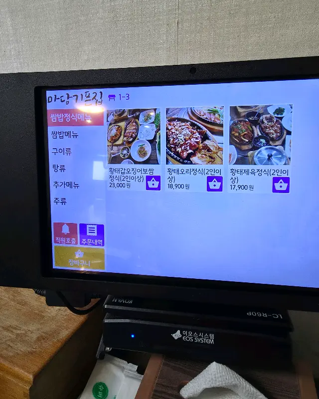 자리에 앉자마자 메뉴판 스캔! 황태, 갑오징어, 제육, 보쌈… 라인업 진짜 미쳤다! 쌈밥 종류도 엄청 다양하고, 정식 메뉴 구성도 알차 보여서 진짜 고민 많이 했어. 결정장애 발동… 결국, 여러 가지 맛보고 싶어서 황태갑오징어보쌈정식 2인분을 주문했다! 이 조합, 진짜 신의 한 수였음.