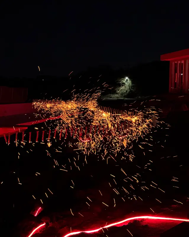 플로웨이브의 하이라이트는 단연 ‘낙화 축제’였다. 해가 지고 어둠이 찾아오자, 카페는 또 다른 모습으로 변신했다. 에서 볼 수 있듯이, 카페 주변의 용암 지형을 붉은색 조명으로 비추어 마치 용암이 흐르는 듯한 환상적인 분위기를 연출했다. 잠시 후, 드디어 낙화 축제가 시작되었다.