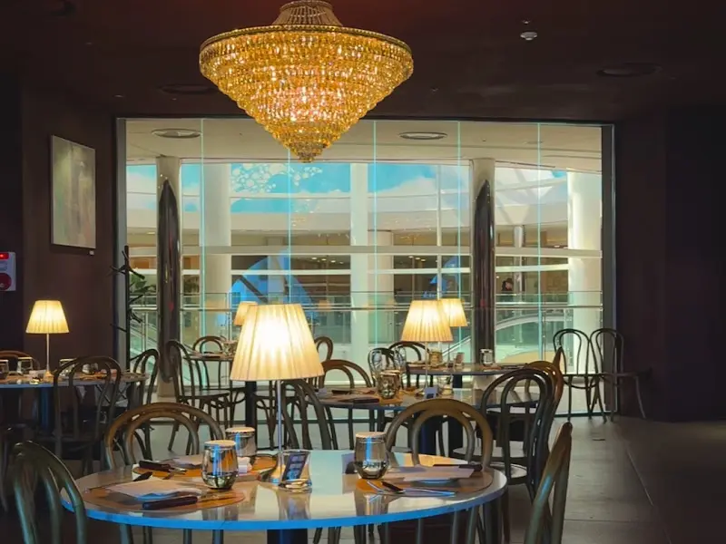 롯데백화점 안으로 들어서니, 은은한 조명과 고급스러운 인테리어가 눈에 띄었다. 사이먼스테이크는 이러한 분위기에 걸맞게, 차분하면서도 세련된 모습으로 자리하고 있었다. 레스토랑 안으로 들어서자, 직원분들이 밝은 미소로 나를 맞이해주었다. 테이블로 안내받는 동안, 레스토랑 내부를 둘러보았다. 테이블 간 간격이 넓어 편안하게 대화를 나눌 수 있는 점이 마음에 들었다. 짙은 색감의 벽면에는 현대적인 미술 작품이 걸려 있었고, 테이블 위에는 은은한 빛을 발하는 램프가 놓여 있어, 따뜻하고 아늑한 분위기를 더했다.