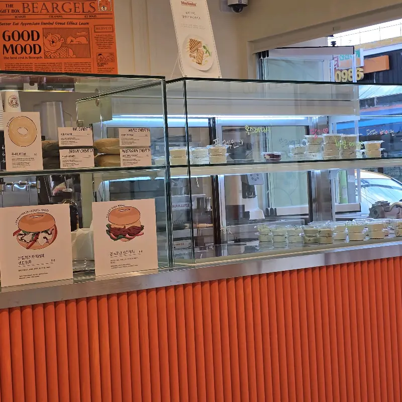 대송시장 골목을 지나 주황색 포인트 컬러가 눈에 띄는 베어글스에 들어서는 순간, 기분 좋은 에너지가 감돌았다. 마치 세포 속 미토콘드리아처럼 활력이 넘치는 공간이었다. 매장의 첫인상은 깔끔함 그 자체였다. 위생 상태는 맛에 대한 신뢰도를 높이는 중요한 요소다. 오픈한 지 얼마 안 된 듯, 먼지 하나 없이 깨끗한 매장 상태가 인상적이었다. 이런 청결함이 꾸준히 유지된다면 맛에 대한 만족도는 배가될 것이다. 인테리어는 주황색을 메인 컬러로 사용하여 발랄하면서도 따뜻한 느낌을 준다. 마치 오렌지 껍질에서 느껴지는 상큼함이 연상된다. 곳곳에 놓인 아기자기한 소품들은 공간에 생기를 불어넣고, 편안한 분위기를 조성한다.