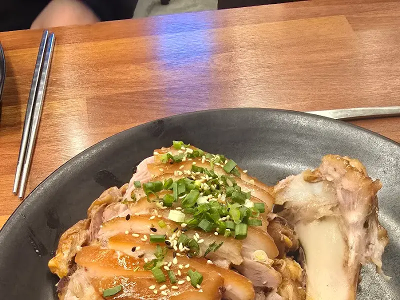 먼저 마늘 족발부터 시식해봤다. 젓가락으로 족발 한 점을 집어 입으로 가져가는 순간, 코를 찌르는 알싸한 마늘 향이 강렬하게 느껴졌다. 입 안에서는 마늘의 매운맛과 족발의 느끼함이 절묘하게 조화를 이루며 폭발적인 풍미를 만들어냈다. 마늘의 알리신 성분은 혈액 순환을 촉진하고, 족발의 콜라겐은 피부 탄력에 도움을 주니, 이 얼마나 과학적인 조합인가! 을 보면 족발 위에 송송 썰린 파와 깨가 듬뿍 뿌려져 있는데, 이는 시각적인 즐거움과 함께 향긋한 풍미를 더해주는 요소였다.